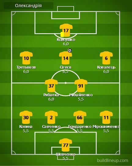 Заміни «Олександрії»: Скорко – 5,0; Мустафаєв – 4,5; Матюшенко – б/о.