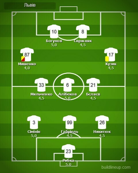 Заміни «Львова»: Вовкун – б/о; Бугай – б/о; Сасовський – б/о.