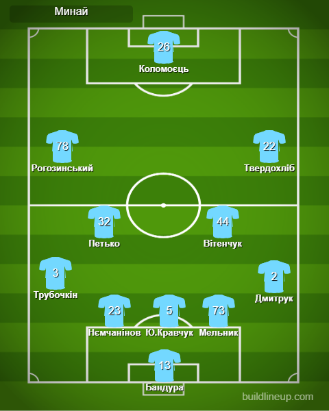 «Минай»: Бандура – Дмитрук, Нємчанінов, Мельник, Вітенчук, Кравчук (Байдал, 89), Рогозинський, Петько (Горін, 67), Твердохліб (Чуєв, 76), Коломоєць (Вишневський, 46), Трубочкін (Гечев, 76).