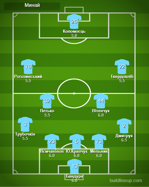 Заміни «Минай»: Вишневський - 6.0, Горін - 6.0, Гечев - 5.5, Чуєв - 5.5, Байдал - б/о.