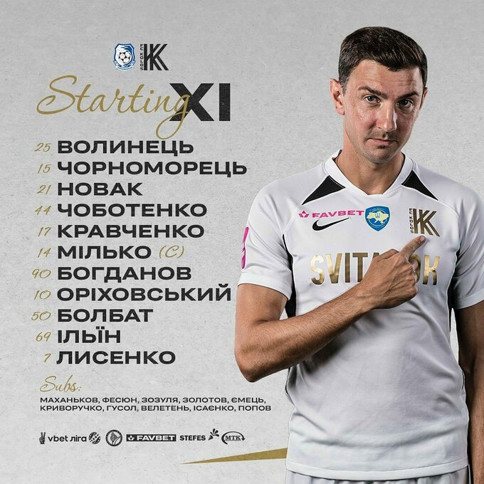 Запасні: Маханьков, Фесюн, Зозуля, Золотов, Ємець, Криворучко.