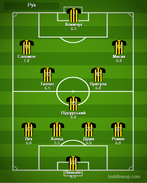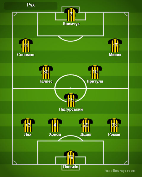 «Рух»: Паньків, Роман, Дідик, Холод, Лях, Притула (Карабін, 70), Підгурський, Таллес, Мисик (Квасниця, 57), Соломон (Столярчук, 90+1), Климчук.