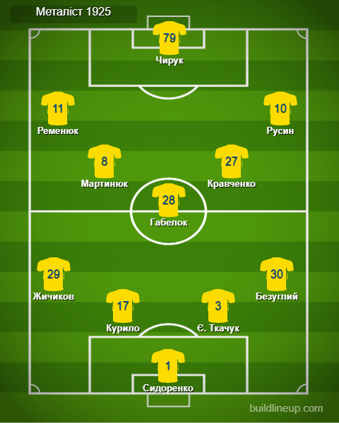 «Металіст 1925»: Сидоренко, Безуглий, Ткачук Є., Курило, Жичиков, Габелок (Ткачук А., 89), Русин, Кравченко (Рудавський, 8), Мартинюк, Ременюк (Ногейра, 64), Чирук (Островський, 64).