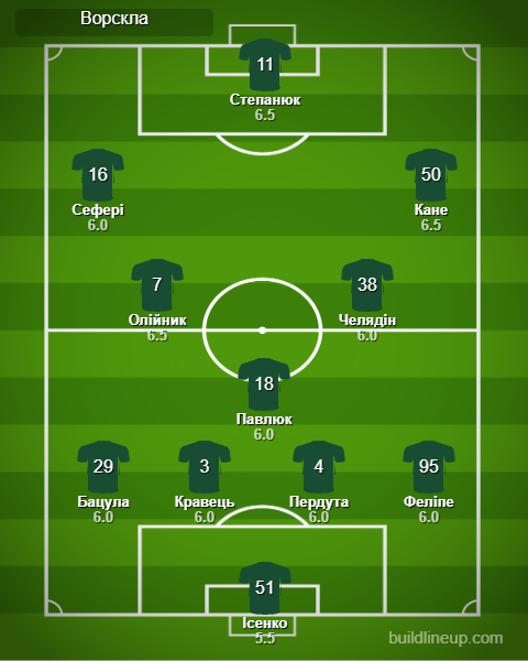 «Ворскла»: Ісенко, Кравець, Пердута, Олійник (Лопес, 79), Степанюк, Сефері, Павлюк, Бацула, Челядін, Кане, Феліпе (Скляр, 38).