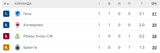 Саме ця четвірка розіграє медалі чемпіонату. Поки що лідирує «Генк» (41 очко).