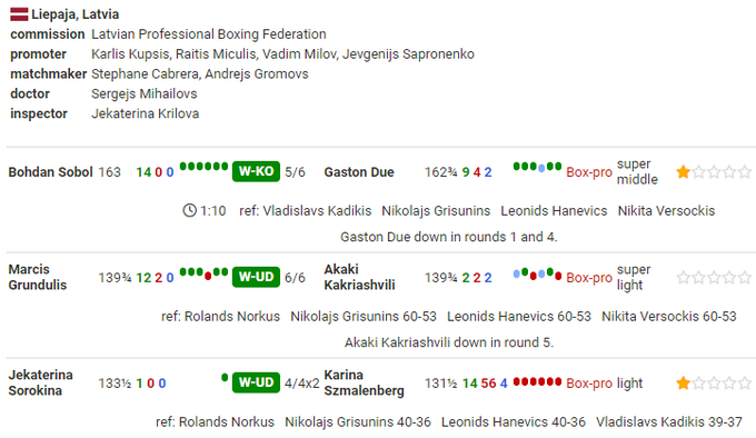 6-раундовий поєдинок Соболя очолював вечір боксу в латвійському місті Лієпая.