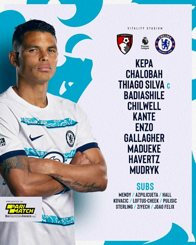«Челсі»: Кепа, Чалоба, Тіаго Сілва, Бадіашиль, Чілвелл, Канте, Енцо Фернандес, Галлахер, Мадуеке, Хаверц, Мудрик