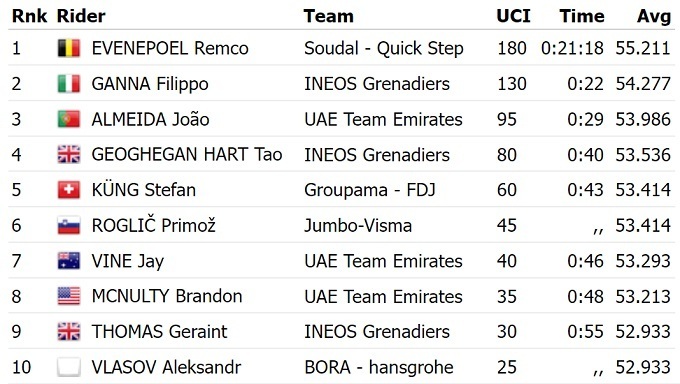 Бельгійський велогонщик команди «Soudal Quick Step» Ремко Евенпул виграв стартовий етап Джиро д'Італія-2023 – гонку з роздільним стартом на 19,6 км. Він на 22 секунди випередив господаря гонки, Філіппо Ганну з «Ineos Grenadiers». Топ-3 замкнув португалець Жоау Алмейда з «UAE Emirates».