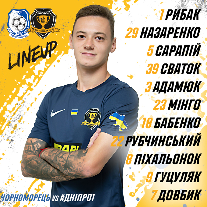 Чорноморець – Дніпро-1. Відомі стартові склади команд