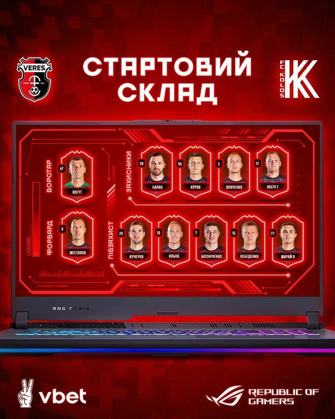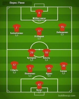 «Верес»: Когут – Балан, Курко, Вовченко, Г.Пасіч, Кльоц, Кучеров, Блізніченко (Дахновський, 70), Лебеденко (Гайдучик, 70), В.Шарай, Шестаков.