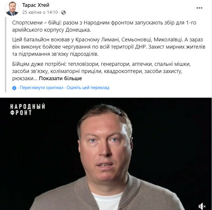 Тарас Хтей не соромиться збирати кошти військовим, які вбивають його земляків