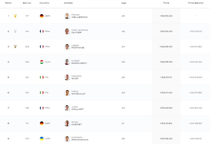 1. Флоріан Веллброк (Німеччина) – 1:52:53,20