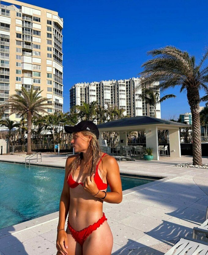 Українська тенісистка Юлія Стародубцева (WTA 499) опублікувала фотографії у червоному купальнику біля басейну у Флориді (США) у своєму Instagram.