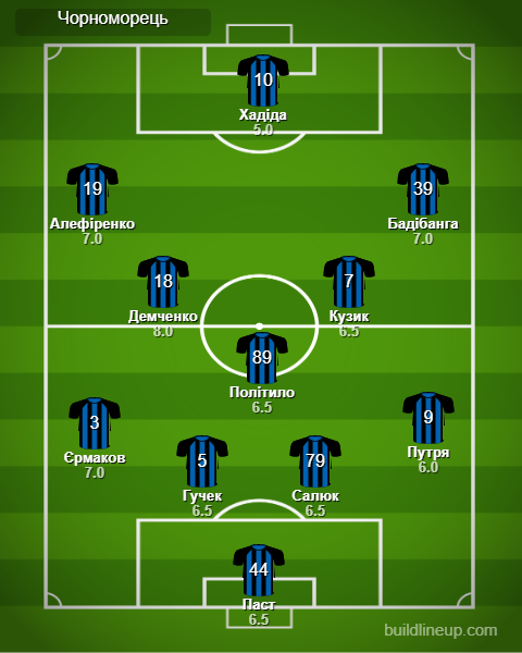 «Чорноморець»: Паст, Салюк, Гучек, Путря, Єрмаков, Політило, Кузик (Задоя, 88), Демченко, Бадібанга, Алефіренко (Черткоєв, 90+2), Хадіда (Штогрін, 46, Гладкий, 80).