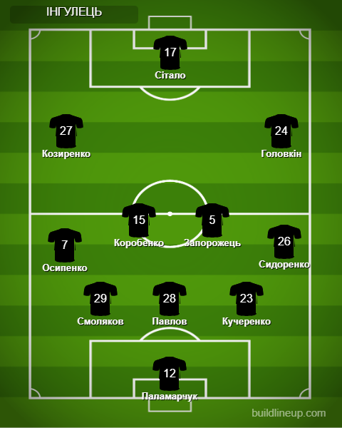 «Інгулець»: Паламарчук - Сидоренко (Білик, 81), Павлов, Кучеренко, Смоляков - Коробенко - Головкін (Козак, 68), Осипенко (Мельничук, 46), Запорожець, Козиренко (Д. Кравчук, 86) - Сітало (Марусич, 68).