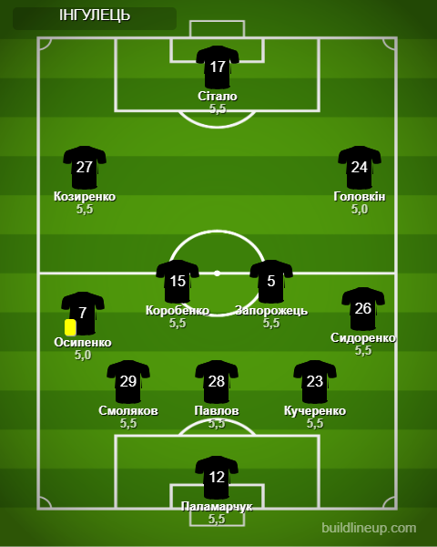 Заміни Інгульця: Мельничук - 5,5, Козак - 5,0, Д. Кравчук - 5,0, Марусич - 5,0, Білик - 5,5.
