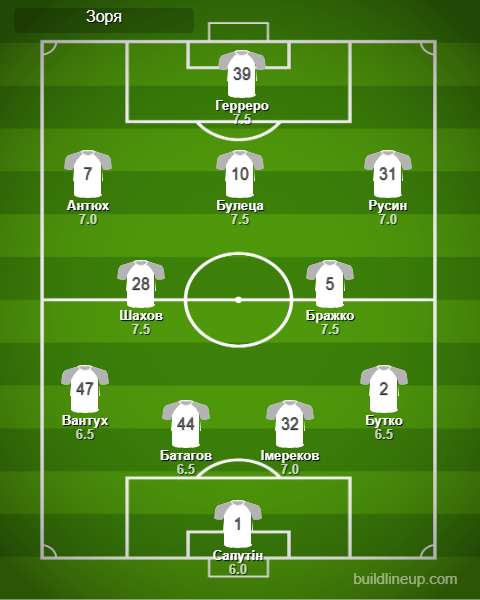 Заміни «Зоря»: Погорілий - 6.0, Снурніцин - 6.0, Мишньов - 6.0, Хахльов - 6.0, Полегенько - - б/о.