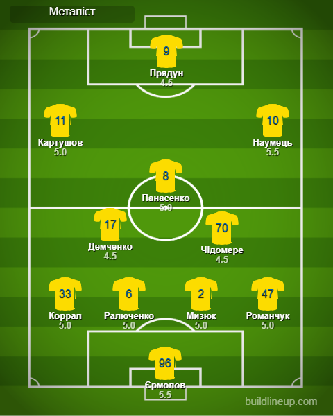 «Металіст»: Єрмолов, Коррал, Мизюк, Ралюченко, Романюк (Влага, 82), Демченко, Панасенко (Багачанський, 46), Картушов (Рязанцев, 46), Чідомере (Ніколишин, 33), Наумець (Синчук, 87), Прядун.