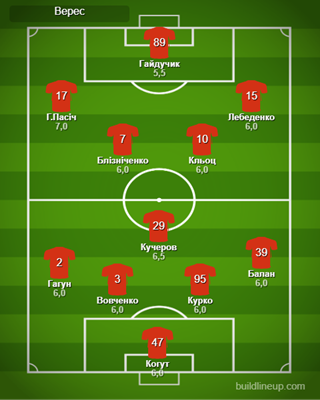 Заміни у «Вереса»: М.Шестаков – 6,0, Вл.Шарай – б/о, Дахновський – б/о, Вадовський – б/о.