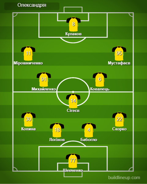 Заміни «Олександрія»: Кожушко - 5.5, Кобзар - 5.5, Матюшенко - 5.5, Шулянський - б/о.