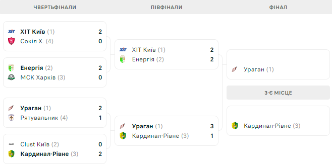 Ураган Івано-Франківськ – Кардинал Рівне – 4:1, 5:3, 2:4, 3:1. Рахунок у серії – 3:1