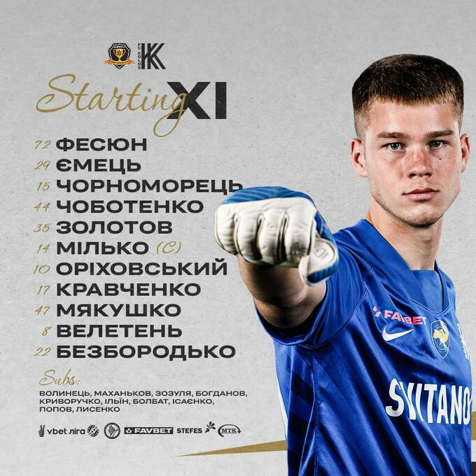 Запасні: Волинець, Маханьков, Зозуля, Богданов, Криворучко, Ісаєнко, Лисенко.