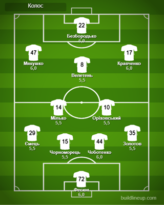 Заміни «Колосу»: Болбат – 5,5, Ільїн – 5,5, Попов – 5,5.