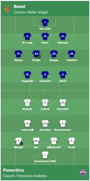 «Фіорентина»: Терраччано, Бірагі, Ігор, Міленкович, Додо, Кастровіллі, Амрабат, Бонавентура, Брекало, Кабрал, Гонсалес