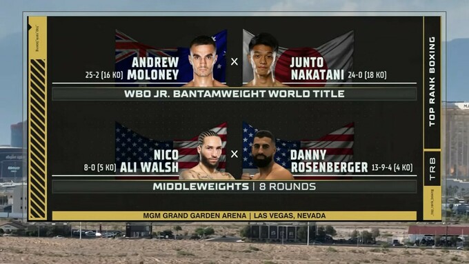 04:00. Наступний бій: Ендрю Молоні (Австралія, 25–2, 16 KO) – Дзюнто Накатані (Японія, 24–0, 18 KO)