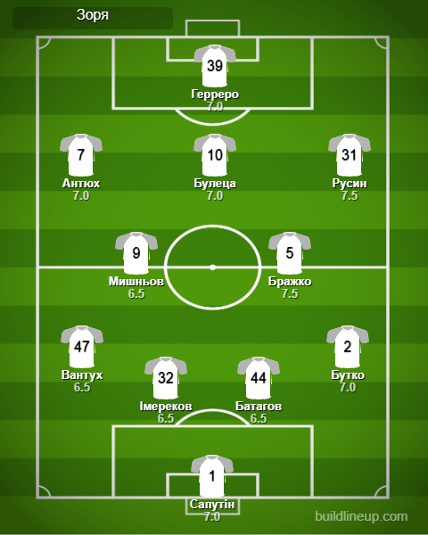 Заміни «Зоря»: Дришлюк - 6.5, Хахльов - 5.5, Снурніцин, Полегенько, Погорілий - б/о.