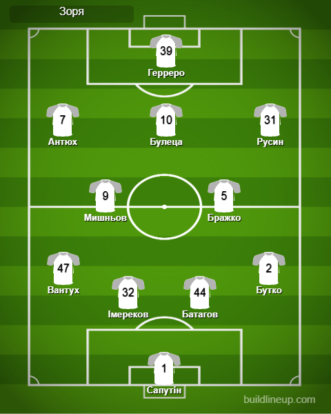 «Зоря»: Сапутін, Імереков, Батагов, Бутко, Вантух (Снурніцин, 88), Бражко, Мишньов (Полегенько, 88), Булеца (Дришлюк, 69), Антюх, Русин (Погорілий, 88), Герреро (Хахльов, 74).