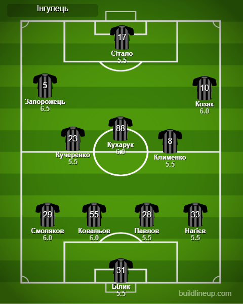 Заміни «Інгулець»: Поспєлов - 6.5, Марусич - 5.0, Головкін - 6.5, Козиренко - 6.0, Коробенко - 5.5.