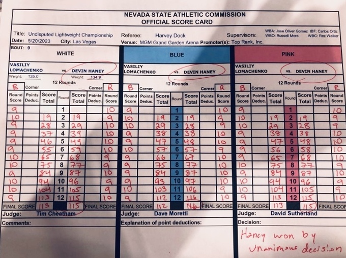 ФОТО. Як вони рахували? Суддівські записки бою Ломаченка та Хейні