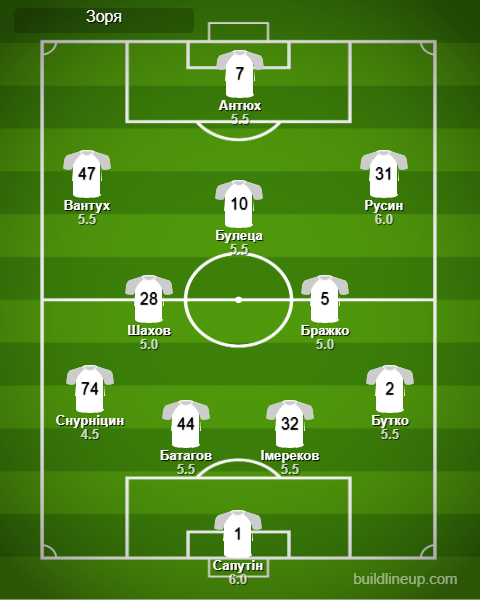 Заміни «Зоря»: Дришлюк - 5.5, Мишньов - 5.5, Хахльов - 5.5, Полегенько - 5.5, Сміян - 5.5.