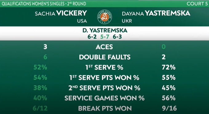 Даяна Ястремська (Україна) – Сачія Вікері (США) – 6:2, 5:7, 6:3