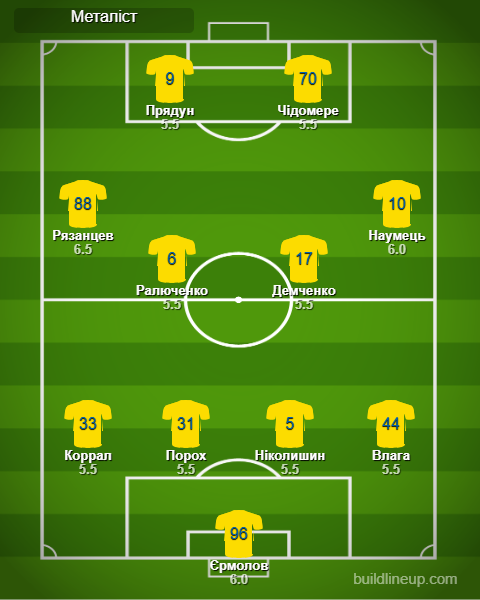 Заміни «Металіст»: Чайковський - 5.5, Коркішко - 5.5, Картушов - 5.5, Мизюк, Багачанський - б/о.