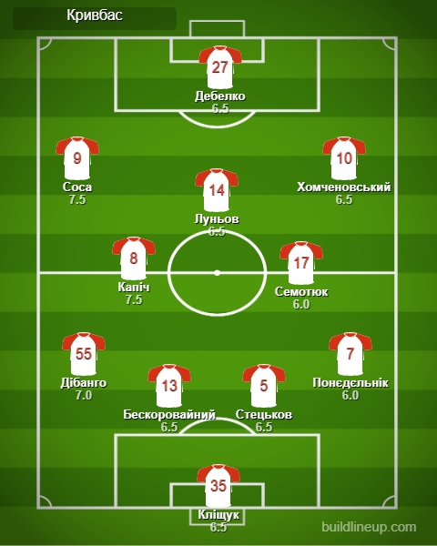 Заміни «Кривбас»: Татарков - 5.5, Шевченко - 6.0, Опанасенко, Карпусь, Кораблін - б/о.