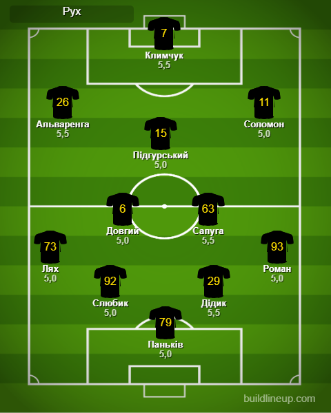 «Рух»: Паньків – Роман, Слюбик, Дідик, Лях, Довгий (Таллес, 46), Підгурський, Сапуга, Альваренга (Руніч, 56 (Карабін, 89), Соломон (Квасниця, 67), Климчук.