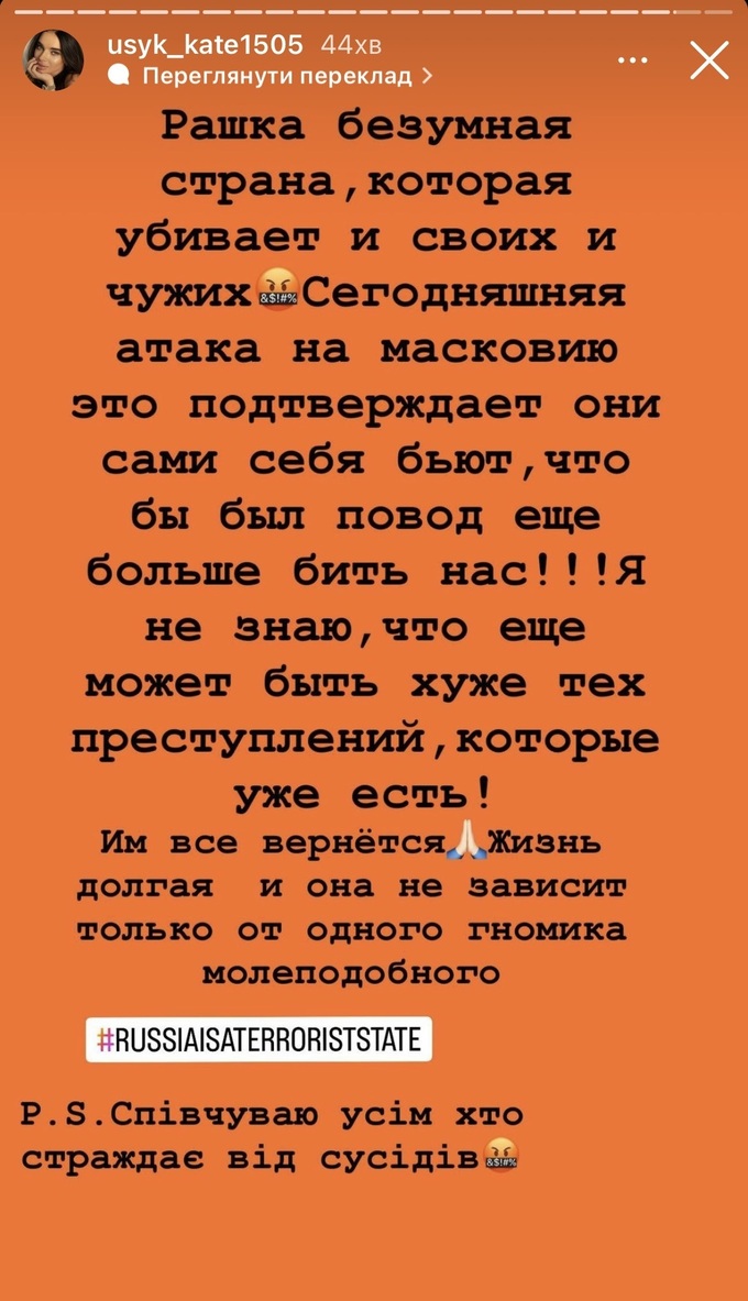 Дружина чемпіона світу в суперважкій вазі за версіями WBA, WBO, IBF, IBO Олександра Усика відреагувала на атаку дронів на Москву.