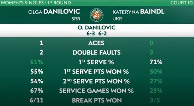 Байндл поступилася Данилович у стартовому поєдинку на Ролан Гаррос