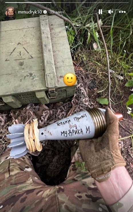Вінгер лондонського «Челсі» і зірної України Михайло Мудрик опублікував фото, на якому зображена артилерійська міна для стрільби з міномета.