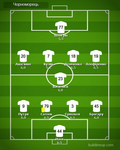 «Чорноморець»: Паст – Брагару, Єрмаков, Салюк, Путря, Васильєв (Хадіда, 65), Демченко, Кузик, Алефіренко (Юсов, 65), Штогрин, Авагімян (Гладкий, 89).
