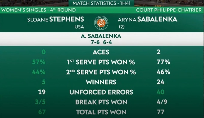 Американська тенісистка тенісистка Слоан Стівенс (№30 WTA) завершила виступи в одиночному розряді на Відкритому чемпіонаті Франції з тенісу.