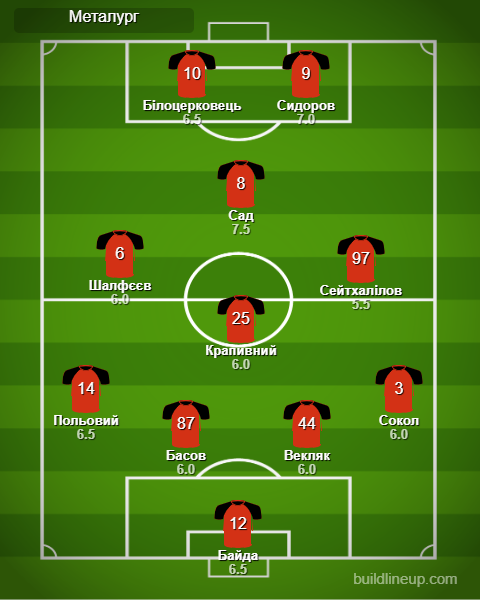 Заміни «Металург»: Палюх - 5.5, Сніжко - 5.5, Могильний - 5.5, Дворовенко - б/о.