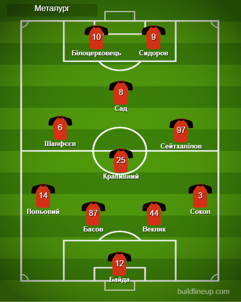 «Металург»: Байда, Сокол, Векляк, Басов, Польовий, Крапивний, Сейтхалілов (Палюх, 74), Шалфєєв (Дворовенко, 90+3), Сад (Сніжко, 74), Білоцерковець (Могильний, 78), Сидоров.