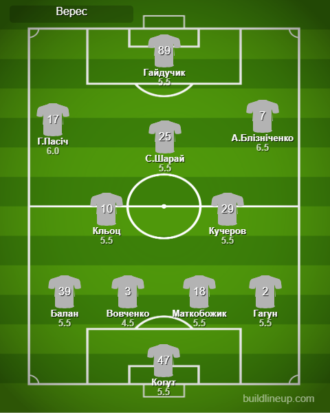 Заміни «Верес»: Лебеденко - 6.0, Шестаков - 5.5, В.Шарай - 5.5.