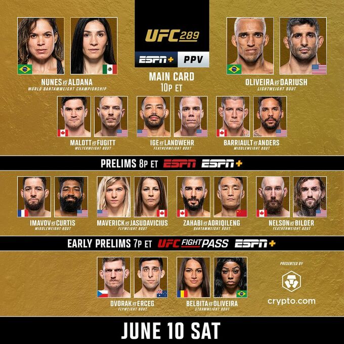UFC 289: Нуньєс – Алдана, Оливейра – Даріуш. Дивитися онлайн. LIVE