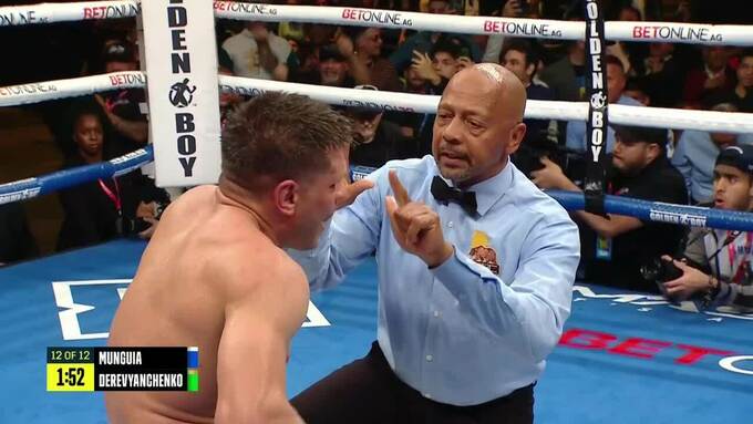 MUNGUIA KNOCKS DOWN DEREVYANCHENKO IN THE FINAL ROUND #MunguiaDerevyanchenko pic.twitter.com/SmG2IbQKVy