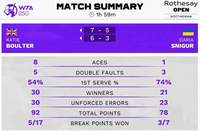 Дар'я Снігур (Україна) – Кеті Бултер (Велика Британія) – 5:7, 3:6
