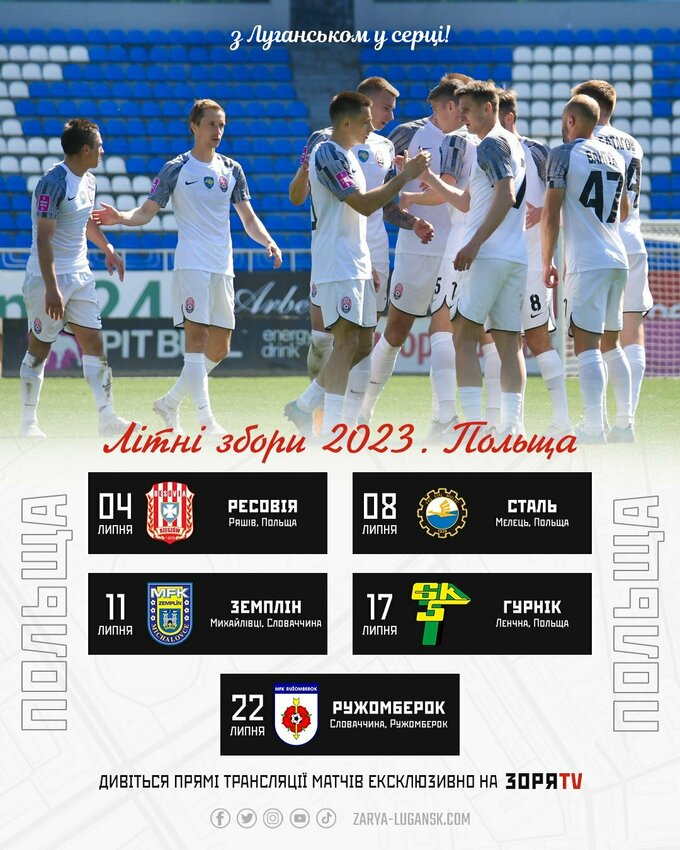 Розклад контрольних матчів «Зорі» на зборах в Польщі